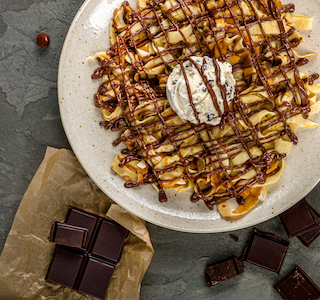 Signature crepe filled with LADS’ homemade pistachio kunafa chocolate, blending crunchy kunafa with rich pistachio.